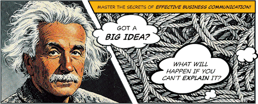 I started with a concept: Albert Einstein says “Got a big idea? What will happen if you can’t explain it?”